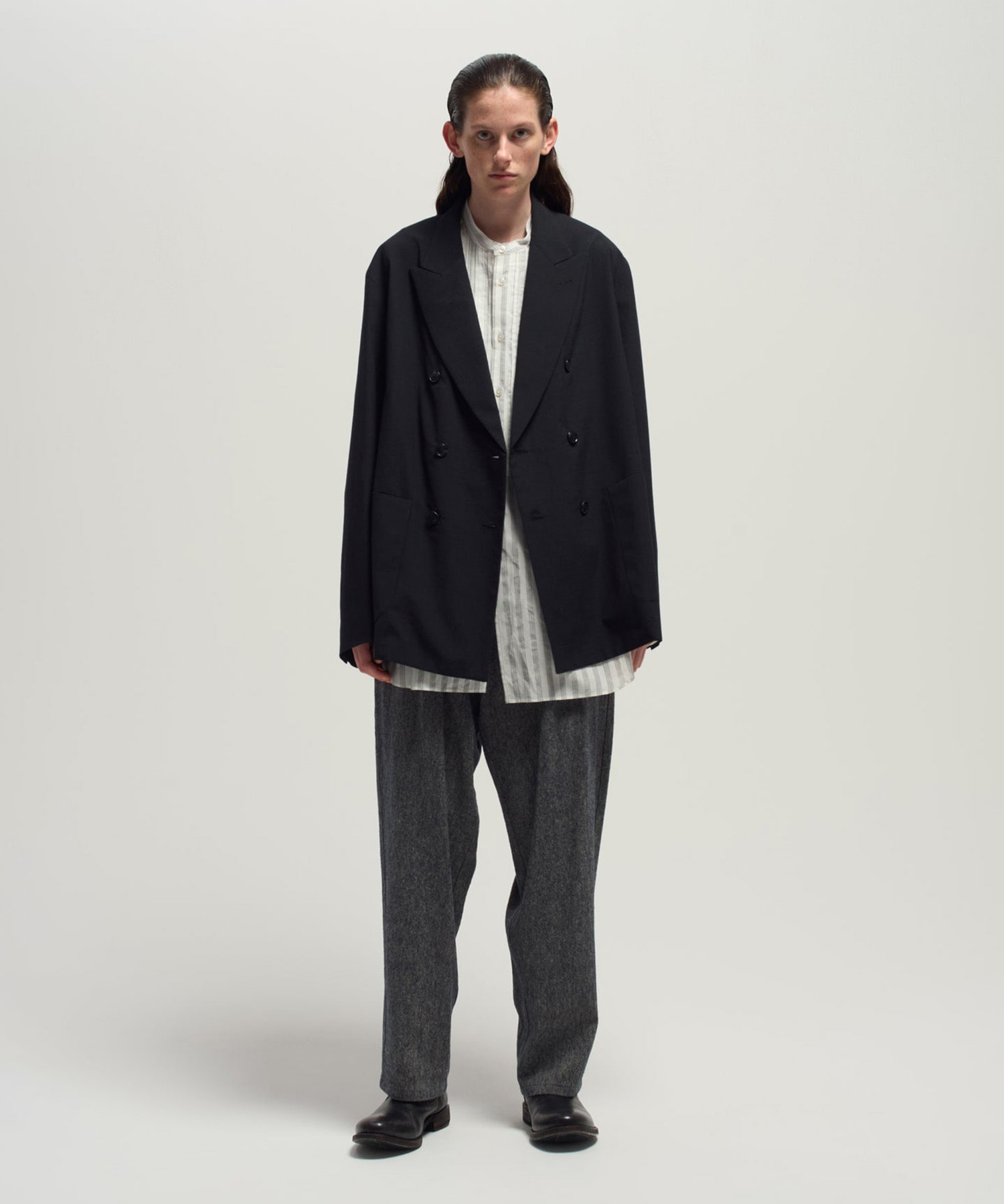 デザイン ウールトロピカル素材を使用したダブルジャケット。 先染の糸を使用した深い色合いが特徴の生地を使用し、仕上げにタンブラーをかけしなやかさを出しています。 オーセンティックなディテールを採用し、ルーズすぎない適度なバランスに仕上げたジャケットになります。 素材 ・裏地:あり ・伸縮性:なし ・洗濯表記:ドライクリーニング メーカー品番:25SWT02 -URU- Accelerate Creativity Accelerate Imagination -想像力(頭)と技術力(手)の加速。 デザイナー:漆山政春。 世界で活躍してきた数々のコレクションブランドのパタンナーとして活躍後、独立。 生粋のパタンナー畑で培われてきた技術力、ノウハウを元に新たな視点、想像力で原型を壊し自らの線で新しい形に再構築する。 2010年秋冬シーズンよりブランド「AMAZE」をスタート。2011年秋冬シーズンよりブランド名を「URU(ウル)」に変更。 シーズンテーマを設けず年間を通して一つのテーマをコレクションに反映させている。 ※店舗と在庫を共有しておりますので、受注確認メールが届いてもご注文のタイミングによりましては売り切れになる可能性がございますので、予めご了承ください。 ※商品の色味につきまして、撮影環境、お客様のお使いのPCのモニター環境により実際のカラーと画像の色味が違って見える場合が御座います。