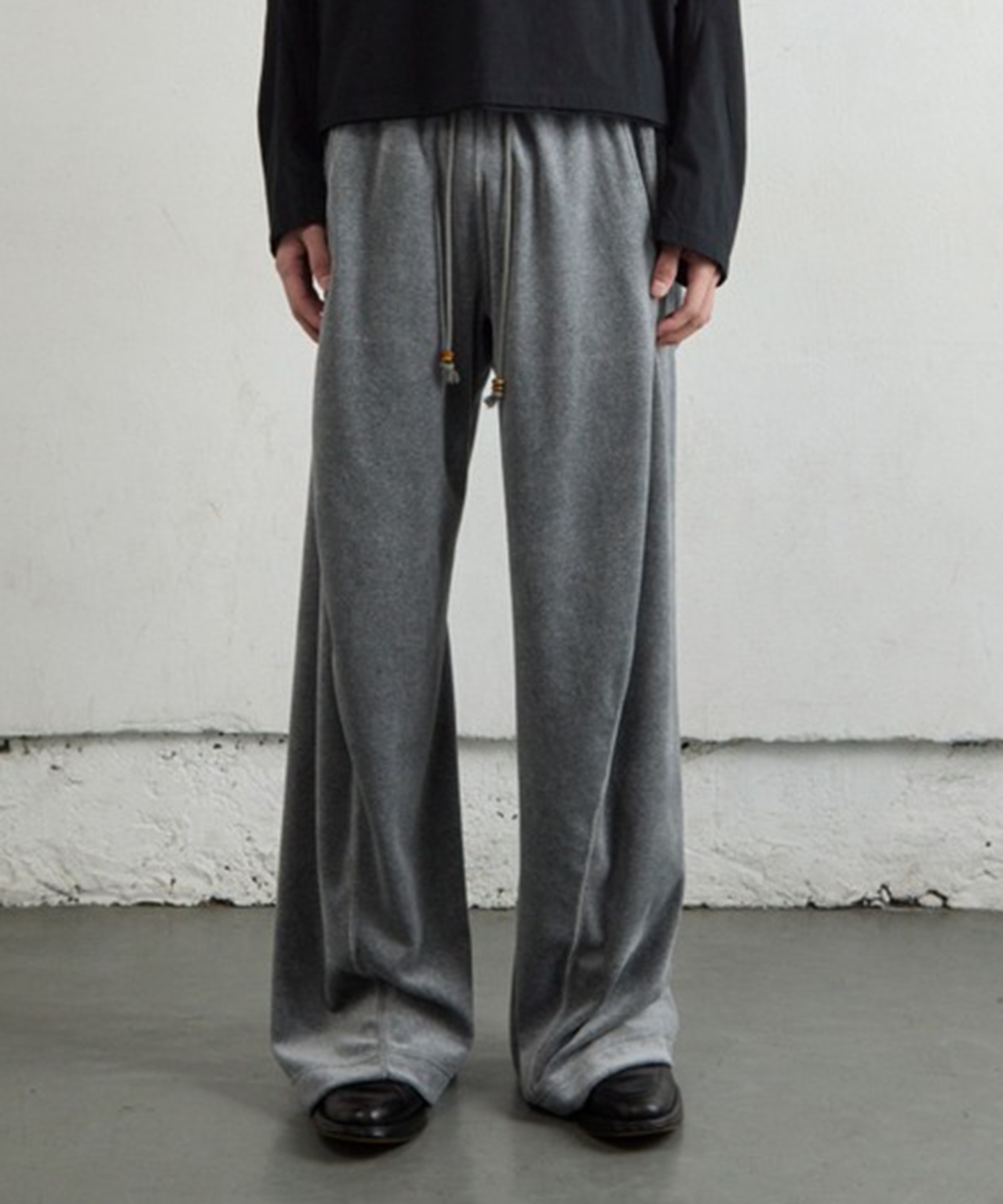 デザイン オーガニックコットンヘビー裏毛を使用したワイドシルエットラウンジパンツ。 バイオウォッシュ加工によるヴィンテージ感が特徴。 人間工学に基づいた立体裁断で3Dパターンメイキングを駆使し、膝や足回りの動きやすさを解放する為にサイドシームが大きく捻じれたデザインが特徴です。 ゆったりとしたシルエットですが立体裁断により野暮ったくならず、洗練されたシルエットを形成します。 サイドシーム利用のシームポケット。斜めに配置したバックポケット。 ウエストコード先端にはオニキスやタイガーアイの天然石ビーズ装飾。 今回よりフラットシーマー縫製にアップデート。 推奨サイズ 身長~174cm:サイズ1 身長175cm~:サイズ2 素材 ・裏地:なし ・伸縮性:なし ・洗濯表記:手洗い可能 メーカー品番:NF252P08 -NVRFRGT- “禅における不忘念(フモウネン)の精神とアイデンティティーの多様性”をコンセプトに掲げ、 一過性のモノではなくワードローブに深く根差すモノ創りを目指す。 独自のパターンカットを基に生み出される洗練性と実験的且つユニークなデザインのアプローチによるデイウェア。 ※店舗と在庫を共有しておりますので、受注確認メールが届いてもご注文のタイミングによりましては売り切れになる可能性がございますので、予めご了承ください。 ※商品の色味につきまして、撮影環境、お客様のお使いのPCのモニター環境により実際のカラーと画像の色味が違って見える場合が御座います。