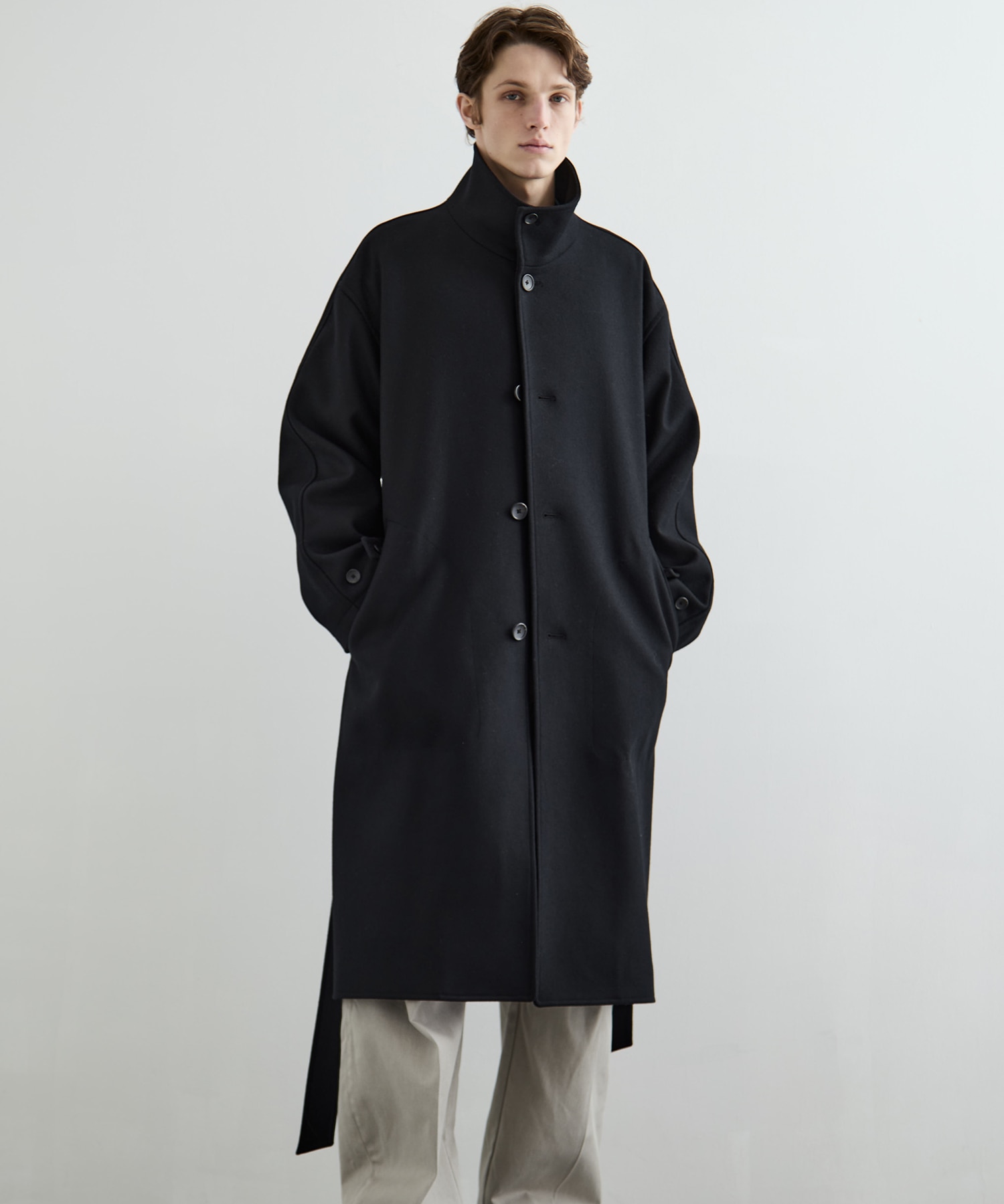 ◆推奨サイズ サイズ1=~171㎝ サイズ2=172㎝~177㎝ サイズ3=178㎝~ ◆拘り: 上質なS140ウールを贅沢に使用した リラックススタンドカラーコート。 ありそうでなかったゆったりとしたスタンドカラー。 昨今のリラックスしたムードにピッタリ合うアイテムです。 また、カジュアルにもビジネススタイルにも合う 汎用性の高さもポイントです。 緩さがありながら着ると不思議とすっきりキレイ目にまとまり、 脇下をカーブさせシャツアウターや ゆったりしたニットやスウェットも着れる秀逸なパターンメイキング。 運動量も合わせて確保しています。 付属のベルトを前で閉めても大人らしいアクセントになります。 着丈は充分な長さがあり、防寒性も抜群です。 ◆素材: 世界一の羊毛産地であるオーストラリアの希少性の高い SUPER140原料とメリノウールの糸を贅沢に使用したメルトン素材。 極細ウール繊維ならではのしなやかで滑らかな肌触りと 程よい光沢感が最大の特徴です。 生後半年以内でしかとれないラムウールもブレンド、 よりソフトで上質な肌触りを実現し、 肉厚でありながら柔らかく軽やかな着心地を表現しました。 高密度に織られて引き締まっているのでとても暖かく、 さらに毛羽立ちにくい加工を施しました。 ◆お手入れ方法: クリーニング