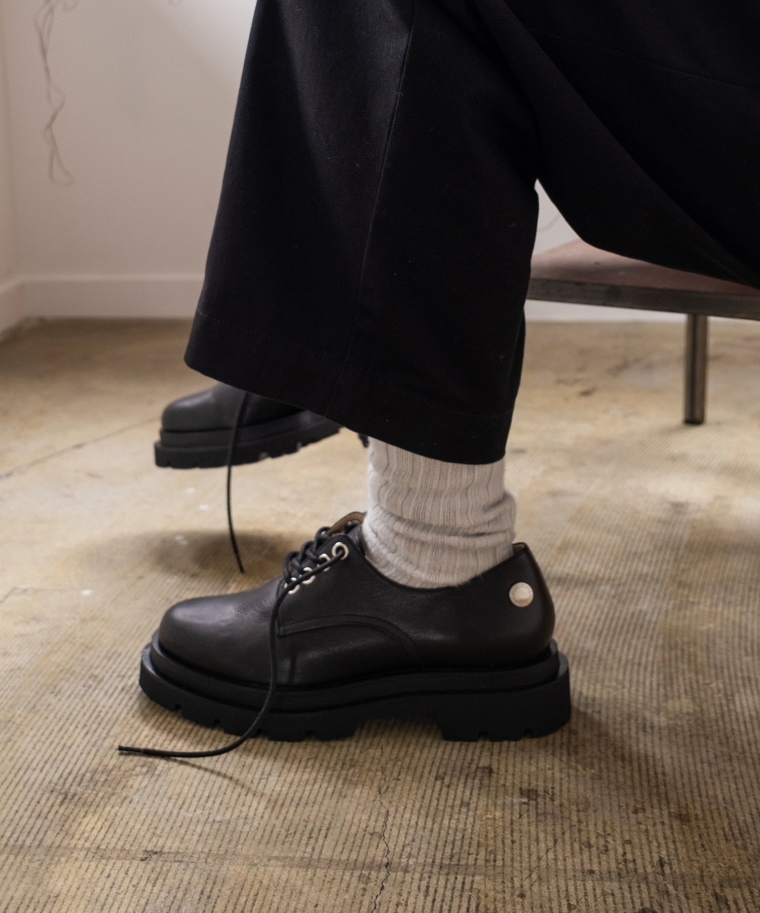 デザイン ベーシックなポストマンシューズをアップデート。 ダブルソールのカジュアルさと、しなやかなトゥのバランスが良く、どんなアウトフィットにも合う一足に。 今回のリリースではインド産の高級カウレザーを使用するほか、ライニングをピッグスキンからカウレザーに変更。 さらに踵部分に刻印入りのボタンをつけるなど大幅にアップデートしました。 ロウビキの丸紐とシルバーチップの付いた平紐の2種類のコットンシューレースが付属します。 セメント製法 *ヒール部分に小穴がありますが、こちらは不良ではなく手作業での靴作りの過程で生じるものです。予めご了承ください。 *普段のサイズの1サイズ下のサイズをお選びいただくことをおすすめします。 メーカー品番:25FW8003 -SimplyComplicated- Simple(単純、シンプル)な要素の中にComplicated(複雑、入り組んだ)な要素を取り入れるというコンセプト。 トレンドの移り変わりが激しい現代のファッション業界においても、ブランドのチームメンバーが「本当に欲しいもの」「長く大切に着られるもの」は何かを企画し全てのアイテムをジャパンメイドに拘って生産。 市場には古着のように何十年にも渡って、数々の人の手に渡り愛される洋服が存在するように、SCの洋服も1年限りで着なくなってしまうようなものではない、ずっと着られるシンプルな洋服でありながら、唯一無二で複雑な要素を兼ね備えたデザインで10年、20年と何十年にも渡って人々に愛される洋服を世界に誇れるジャパンメイドクオリティで製作し日本だけでなく世界に向けて発信することがブランドのモットー。 ※店舗と在庫を共有しておりますので、受注確認メールが届いてもご注文のタイミングによりましては売り切れになる可能性がございますので、予めご了承ください。 ※商品の色味につきまして、撮影環境、お客様のお使いのPCのモニター環境により実際のカラーと画像の色味が違って見える場合が御座います。