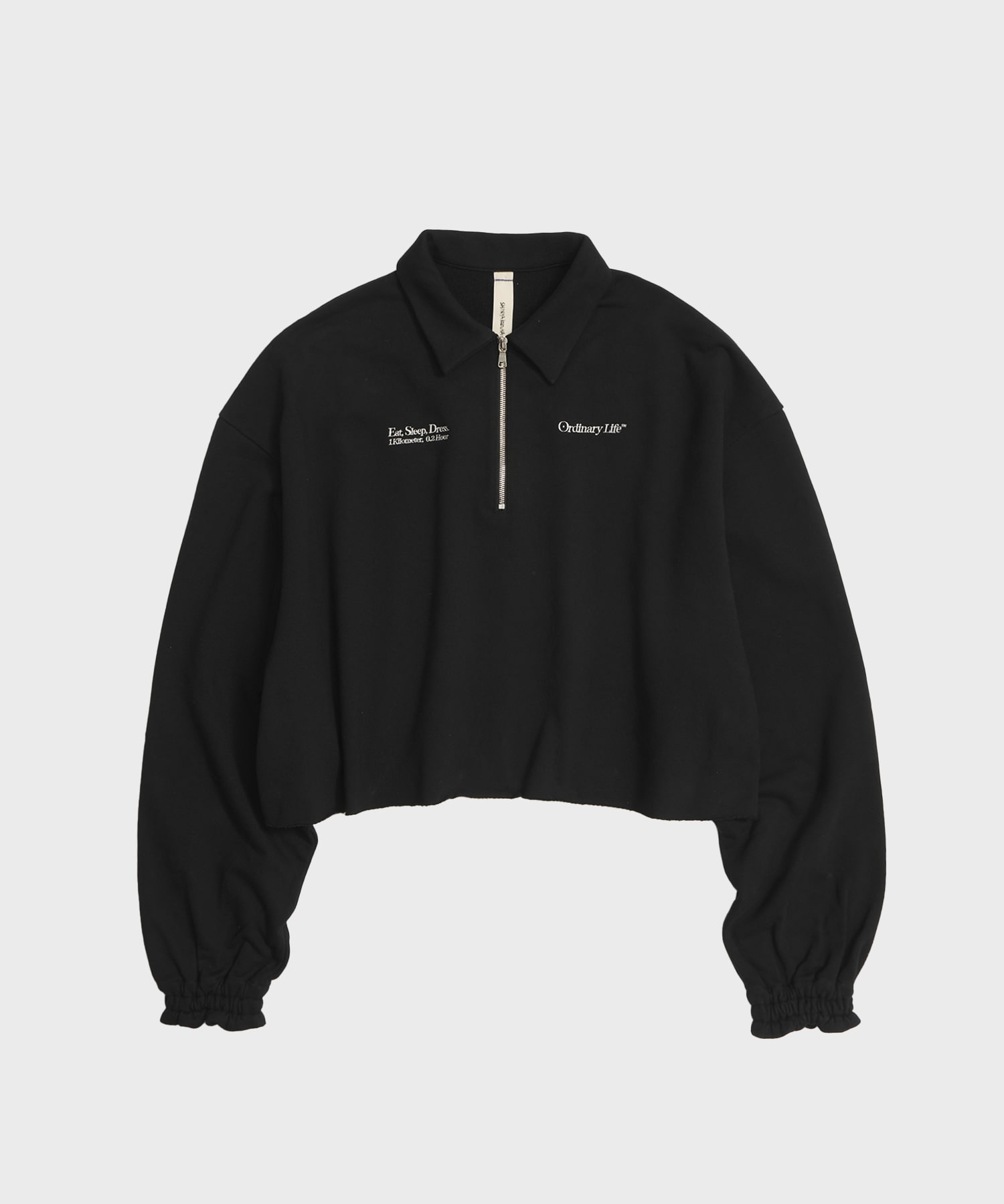 CONZ別注でショート丈仕様に仕上げた 襟付きハーフジップのプルオーバースウェット。