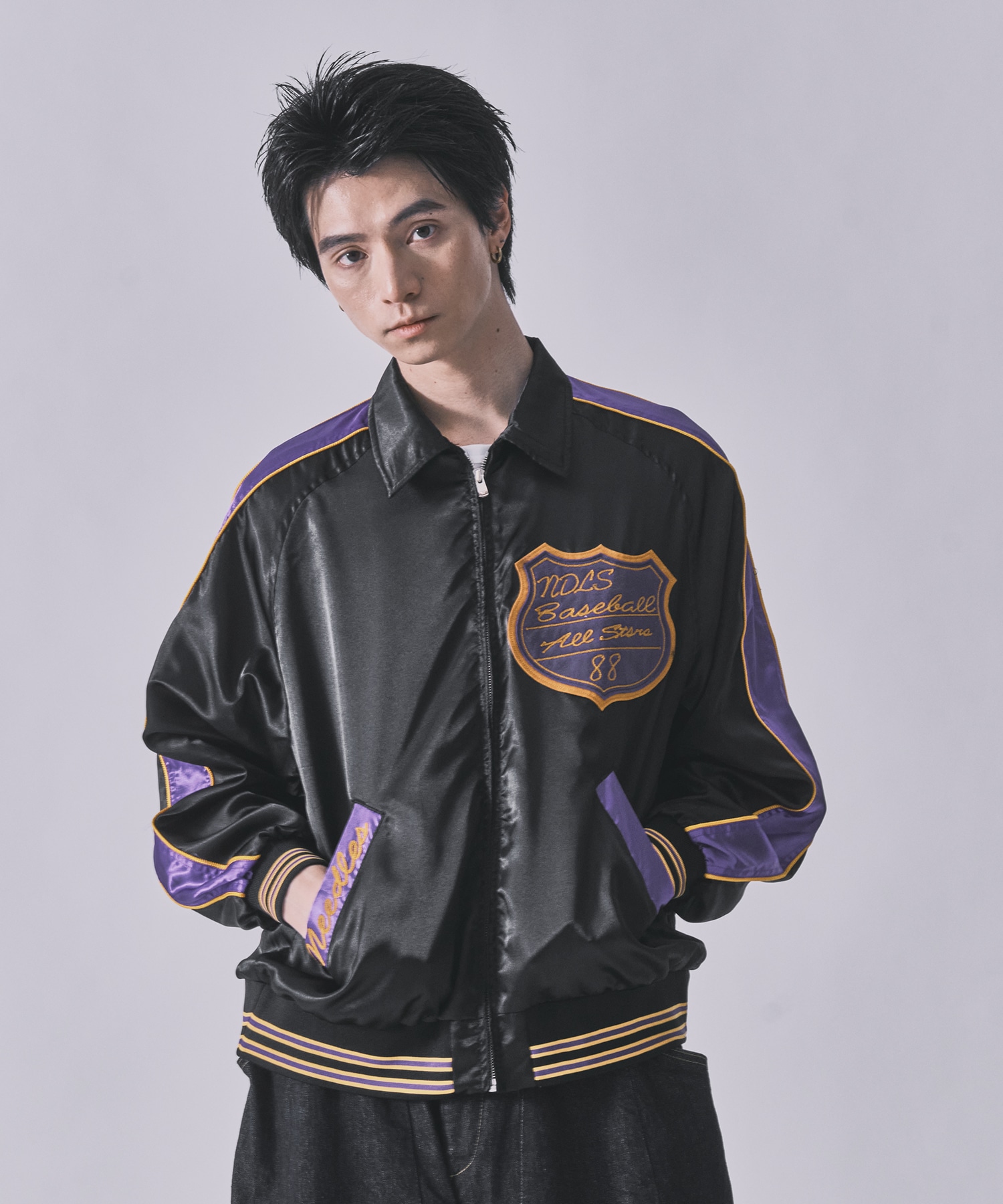 デザイン フロントジップ、袖と裾のライン入りのリブなど、オーセンティックなディテールを〈NEEDLES〉の解釈で落とし込んだスタジャンの登場です。襟付きでシャツやフーディーとのレイヤードのバランスも取りやすく、幅広いスタイリングに対応可能。 素材には上品な光沢をもつポリエステルサテンを採用し、スポーティーなアイテムに洗練されたムードを加えています。 -Needles- 1995年、ネペンテス代表の清水慶三が「ニードルズ(NEEDLES)」をスタート。 日本におけるインポートファッションを20年に渡り牽引してきた経験から、 そのネットワークを駆使し、世界各国のメーカーやクリエイターと盛んにプロジェクトを展開。 メンズウェアについての豊富な知識に裏打ちされた細部へのこだわり、 そしてそこからの遊びや抜け感で、唯一無比の世界観を構築。 ※店舗と在庫を共有しておりますので、受注確認メールが届いてもご注文のタイミングによりましては売り切れになる可能性がございますので、予めご了承ください。 ※商品の色味につきまして、撮影環境、お客様のお使いのPCのモニター環境により実際のカラーと画像の色味が違って見える場合が御座います。
