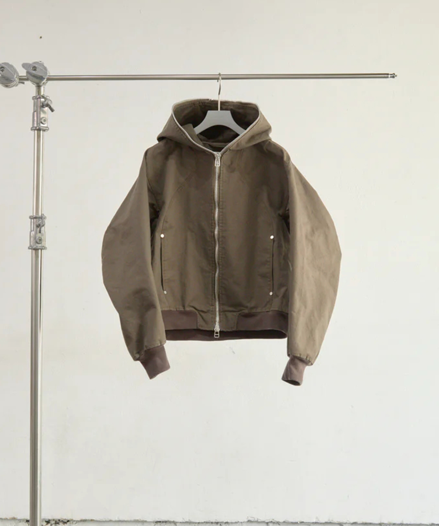 デザイン リサイクルナイロンxコットン混紡糸ヘヴィーウェイトダックを使用し、バイオストーンウォッシュ加工を施したフルジップアップフーデッドジャケット。変形ピヴォットラグランスリーブにカーヴィーなパネリングデザイン。ダブルオープンアルミジッパーフロント。袖口と裾にコットンリブ。ファスナープルコード先端にはオニキスやピクチャージャスパー天然石ビーズ装飾。 ポケット口リベットはレーザー彫刻によるオリジナルパターン入り。 -NVRFRGT- “禅における不忘念(フモウネン)の精神とアイデンティティーの多様性”をコンセプトに掲げ、 一過性のモノではなくワードローブに深く根差すモノ創りを目指す。 独自のパターンカットを基に生み出される洗練性と実験的且つユニークなデザインのアプローチによるデイウェア。 ※店舗と在庫を共有しておりますので、受注確認メールが届いてもご注文のタイミングによりましては売り切れになる可能性がございますので、予めご了承ください。 ※商品の色味につきまして、撮影環境、お客様のお使いのPCのモニター環境により実際のカラーと画像の色味が違って見える場合が御座います。