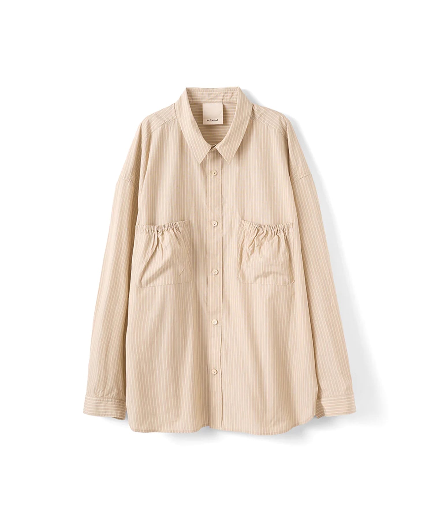 デザイン ブランド定番“WRIST PATCH WIDE SHIRT”のストライプモデル。 春夏仕様として100/2スーピマコットンのストライプタイプライターを採用。高密度ならではのハリと構築的な表情、スーピマ特有の滑らかなタッチと上品な光沢が共存するファブリックです。カラーはクリーンなWHITEと、少し空気を含んだクラシカルなBEIGEの2パターン。 肩を大胆に落としたワイドシルエットに、背面の4タックが生む立体的なボリューム。動きに合わせて揺れるフォルムが、CONZらしい抜けと存在感を演出します。 一枚で主役に。Tシャツの上からラフに羽織っても成立する、春夏シーズンにフィットする一着。 -refomed- 頑丈な作業着から抽出するエレガントなユニフォーム。 refomedは2020-21年秋冬シーズンよりスタートしました。 それ以前には、学生時代からrefomedの名を用いて製作を続けてきました。 デザイナー自身が幼い頃から現在に至るまで経験した事や見てきたもの。 その背景には、実家の左官業を行う祖父の姿を常に側に感じています。 祖父が今も尚仕事中に着ている作業着たちや、祖父のクローゼットに眠った作業着たち。 作業現場で見た職人たちのリアルな着こなしや、 作業過程によるリアルな汚れ、ダメージ。現場の休憩時間の思い出。 作業着の職人に対する配慮。 その全てがrefomedのデザインソースとなってます。 ※店舗と在庫を共有しておりますので、受注確認メールが届いてもご注文のタイミングによりましては売り切れになる可能性がございますので、予めご了承ください。 ※商品の色味につきまして、撮影環境、お客様のお使いのPCのモニター環境により実際のカラーと画像の色味が違って見える場合が御座います。