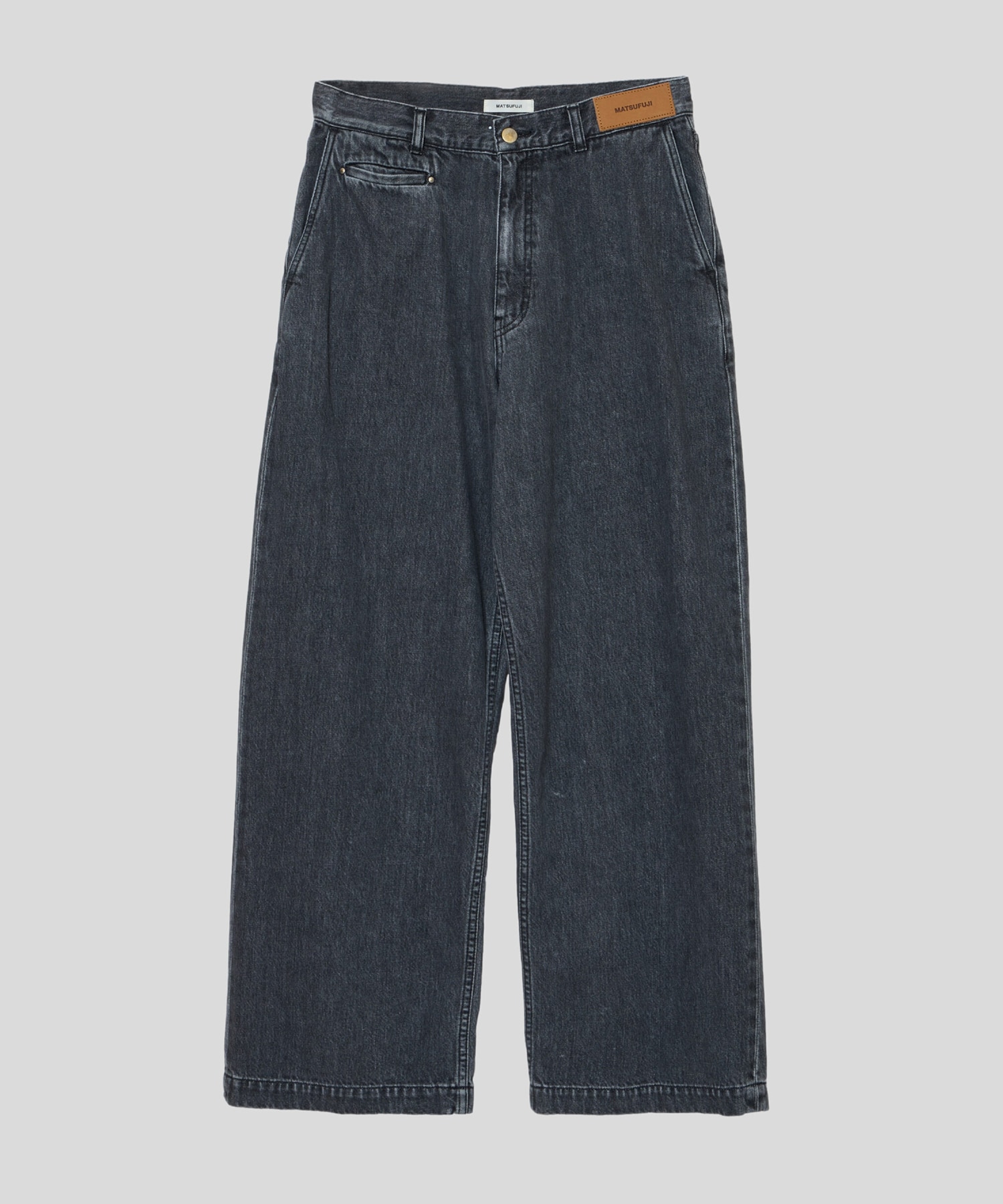 デザイン MATSUFUJI定番ワイドデニムパンツ デニムの産地、岡山で制作したの11.5ozのデニムを使用 ストーンウォッシュとバイオウォッシュ加工 ワイドストレートシルエット スラックスのパターンを落とし込んだシルエット MADE IN JAPAN -MATSUFUJI- コレクションブランドにて、企画、生産、販売の業務に携わったデザイナー 松藤勉(マツフジツトム)が手掛ける自身のブランド「MATSUFUJI」。 権威と労働にひもずく衣服をヒントに、現代の技術と伝統的なクラフトを日常から受けたインスピレーションを元に組み合わせ、 ユーモアあるメンズウェアを提案 「個人の特有性を認識できる衣服」をコンセプトに置き、20AWよりコレクションをスタート。 ※店舗と在庫を共有しておりますので、受注確認メールが届いてもご注文のタイミングによりましては売り切れになる可能性がございますので、予めご了承ください。 ※商品の色味につきまして、撮影環境、お客様のお使いのPCのモニター環境により実際のカラーと画像の色味が違って見える場合が御座います。