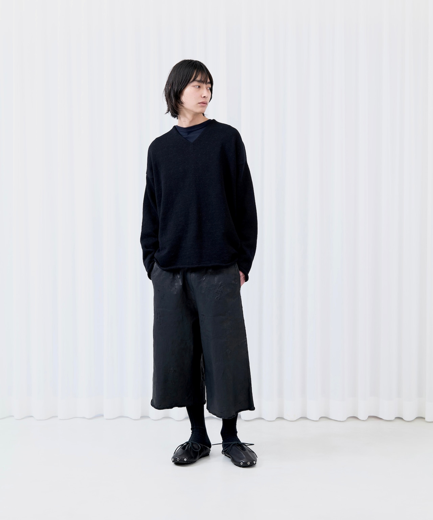 デザイン 特殊なマッドバインダーと顔料をブレンドしたものを刷毛で何層にも製品に厚塗りしていき、ベーキングと柔軟洗いを施します、 全て職人の手作業による丹念な工程は、着用するにつれて厚く盛り上がった箇所が美しいクラック(ひび割れ)を生み出し、 テクスチャや艶も変化していくことによって、経年変化を楽しめる加工になっております。 このような特性が陶器を想起させることから、私たちはこれらの製品群を"CERAMIC"シリーズと名付けました。 裏毛素材、ウエストゴム。 -OUAT- コンテンポラリーアートのような実験的要素に、 モードな雰囲気を纏ったプロダクトを展開するユニセックスブランド。 数十年後にヴィンテージになりうる価値ある服を探求。 アメリカや西欧だけでなく、まだ見ぬアイテムを求めて、 ドイツを中心に東欧まで幅広い国に買い付けで訪れる中で、 今までのリファレンスを元に、全く見たことないものをつくりたいという思いから、 2019年より独学でオリジナルプロダクトの製作を始めたデザイナー・田村氏によるブランド。 日本にはないインポート生地特有の静かで強いテクスチャー、 縫製は技術の高い日本で行うのが生産の基本的なフローで、 常に一着一着を本質的に捉えて高品質なプロダクトを展開。 特殊な生地や資材、縫製付属などをビンテージのリファレンスと組み合わせてクリエイションを行っている。 ※店舗と在庫を共有しておりますので、受注確認メールが届いてもご注文のタイミングによりましては売り切れになる可能性がございますので、予めご了承ください。 ※商品の色味につきまして、撮影環境、お客様のお使いのPCのモニター環境により実際のカラーと画像の色味が違って見える場合が御座います。