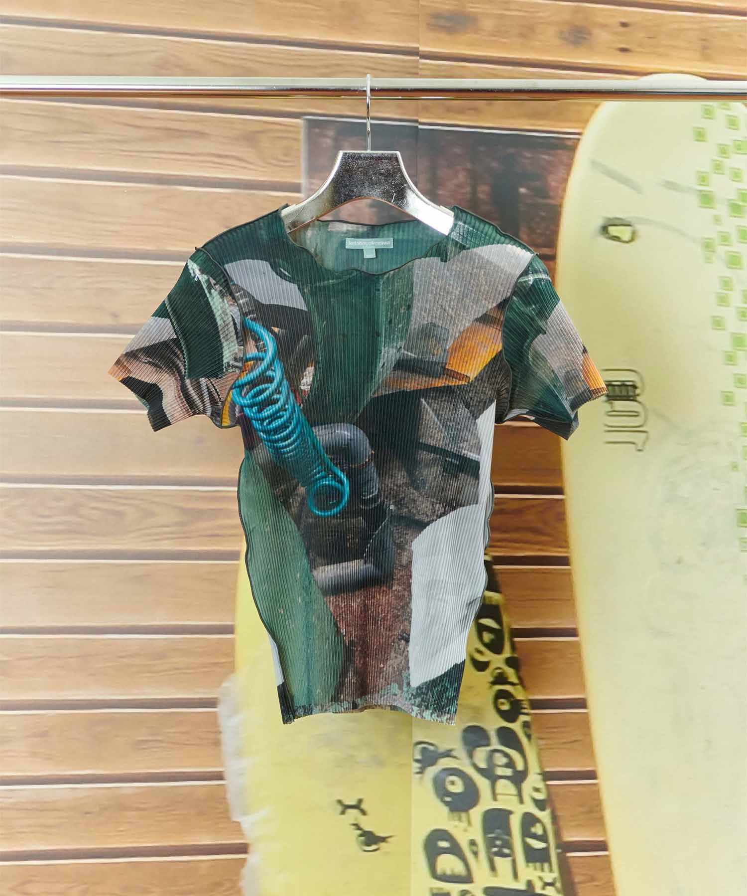 デザイン 毎シーズン人気のグラフィックトップス。 今シーズンは、todoの残布を混ぜ込んだオリジナル下げ札を製作する際に訪れた工場の風景をグラフィック化。 重厚なインダストリアルな空気感と透け感のある軽やかなボディとのコントラストがユニークな1枚です。レギュラーサイズは5柄の展開。 素材は回収されたペットボトルを原料としたリサイクルポリエステル生地を使用。 プリーツ加工がされており伸縮性があるので、体型を選ばず、さらっとした着心地です。 プリーツ方向にくるくるとまとめればシワもつきにくく、速乾性に優れており、旅行などにもピッタリです。 素材 ・裏地:なし ・伸縮性:あり メーカー品番:TDX6S-GR -kotohayokozawa- 2015年にファーストコレクションを発表。 日常でふと湧き上がる感情や出来事から着想を得て、“普段の自分以上に自分を広げてくれる装い”を目指し、身につける人の感情と振る舞いのつながりを追い続けている。 ファッション業界の既存の作り方や売り方にとらわれず、即興性を重視した実験的なものづくりを目指し、todoというラインでは細かなプリーツをうねるような縫製で仕上げたアイテムが特徴。 ※店舗と在庫を共有しておりますので、受注確認メールが届いてもご注文のタイミングによりましては売り切れになる可能性がございますので、予めご了承ください。 ※商品の色味につきまして、撮影環境、お客様のお使いのPCのモニター環境により実際のカラーと画像の色味が違って見える場合が御座います。
